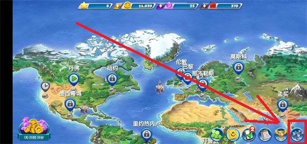 1、打開游戲,在游戲世界地圖界面, 點(diǎn)擊右下角的【齒輪設(shè)置】進(jìn)入到設(shè)置界面;