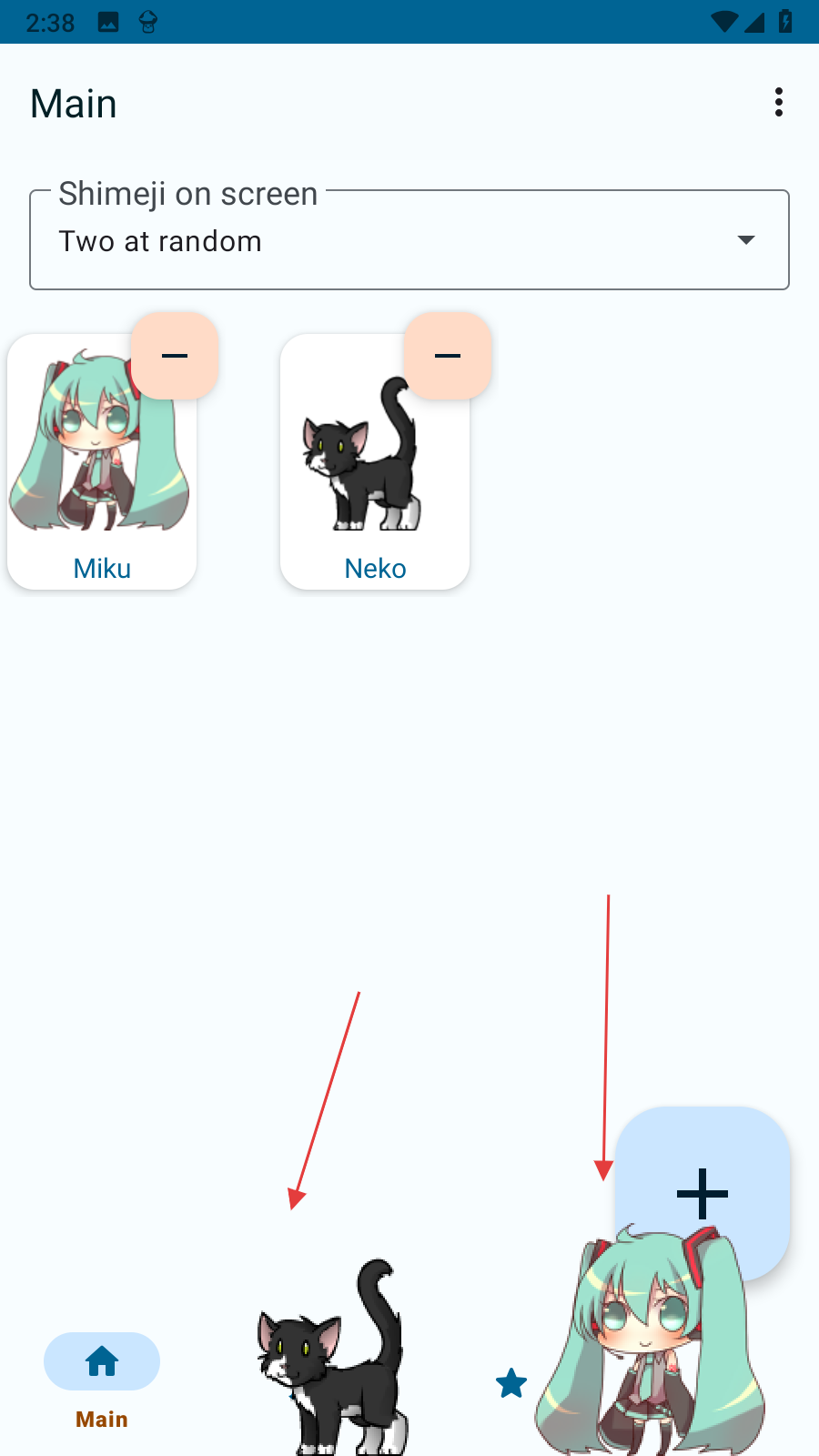 3、進入應(yīng)用主界面后,初始桌寵就會出現(xiàn)在桌面上,可以點擊加減更改刪除桌寵。