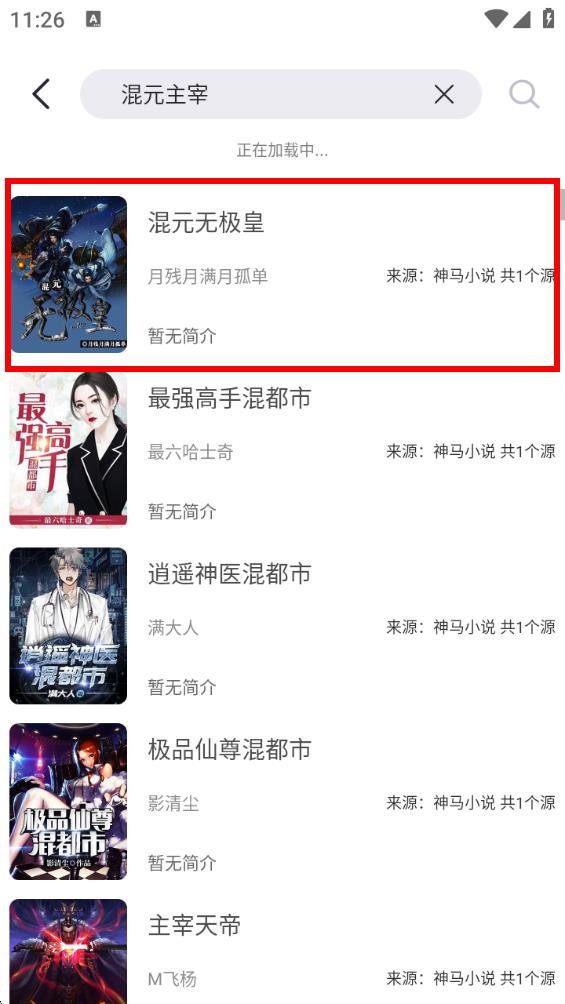 1、打開(kāi)熒光小說(shuō)APP,搜索并進(jìn)入想閱讀的小說(shuō),如搜索混元主宰進(jìn)入混元無(wú)極皇。