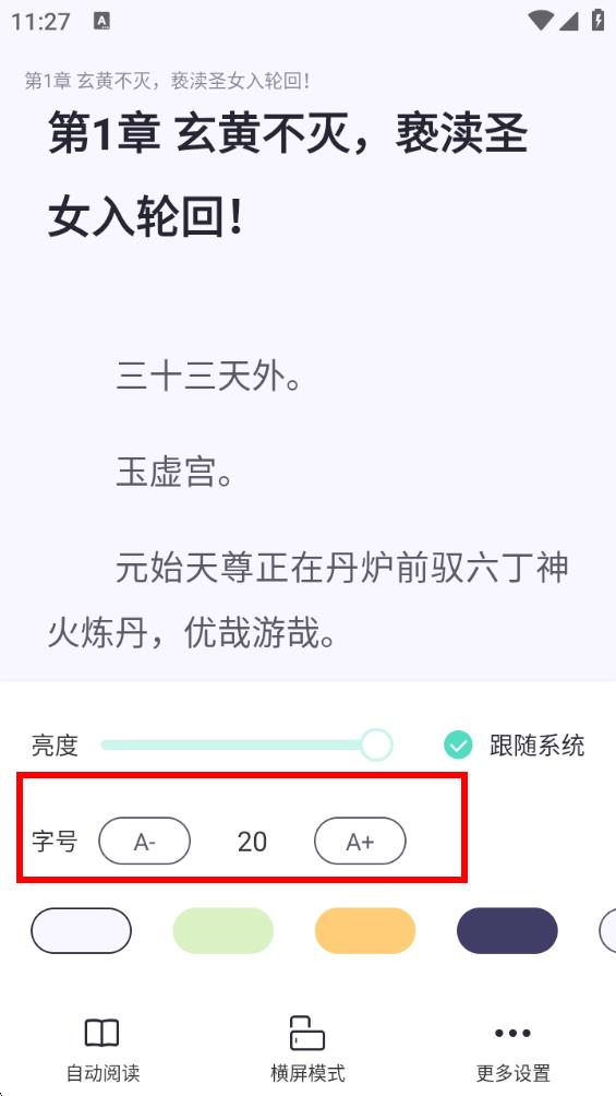 3、在設(shè)置界面找到字號(hào)選項(xiàng),點(diǎn)擊A-縮小字號(hào),點(diǎn)擊A+放大字號(hào),也可通過(guò)中間數(shù)字精準(zhǔn)設(shè)置字號(hào)大小。