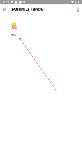 1、打開迷鹿框架APP,點(diǎn)擊顯示添加按鈕準(zhǔn)備添加需要克隆的應(yīng)用。