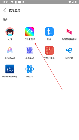 2、點(diǎn)擊添加后,進(jìn)入克隆應(yīng)用選擇頁面,找到并點(diǎn)擊目標(biāo)應(yīng)用。