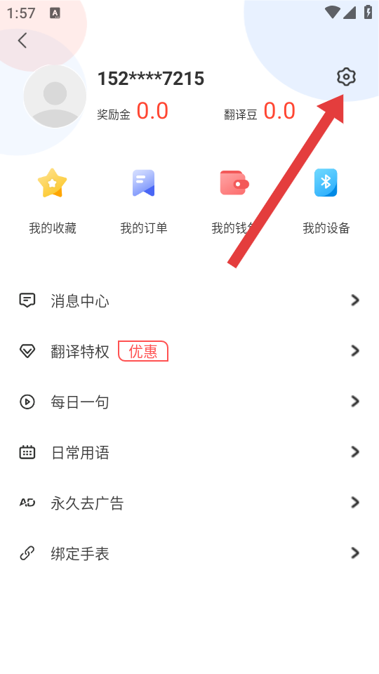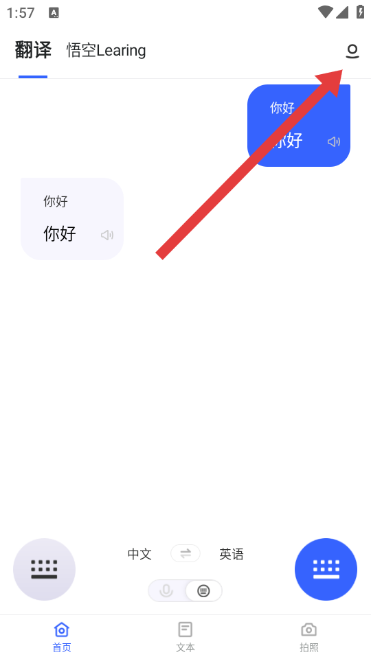 1、在出國(guó)翻譯官主界面,點(diǎn)擊右上角的個(gè)人中心圖標(biāo),進(jìn)入個(gè)人中心頁(yè)面。