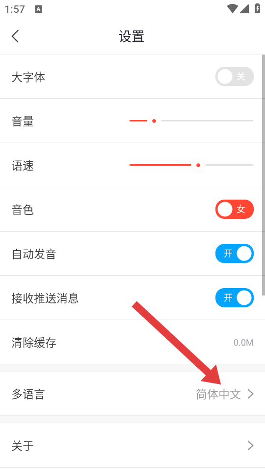 3、在設(shè)置的頁(yè)面,需要點(diǎn)擊多語(yǔ)言的選項(xiàng),進(jìn)入語(yǔ)言選擇的界面。