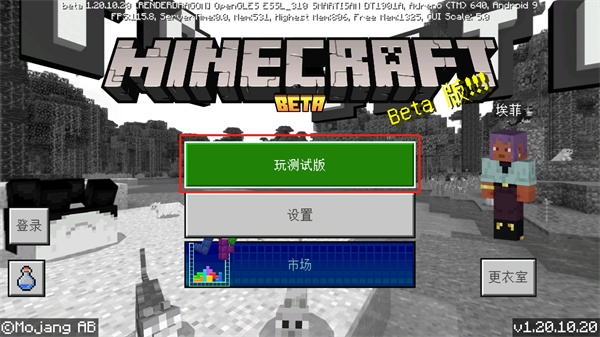 1、打開游戲之后,就可以看到游戲登錄頁(yè)面,在其中點(diǎn)擊【玩測(cè)試版】進(jìn)入到游戲環(huán)節(jié);