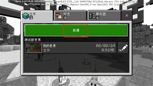 2、然后在選擇世界的界面中,我們需要新建一個(gè)世界,點(diǎn)擊【新建】創(chuàng)建世界;