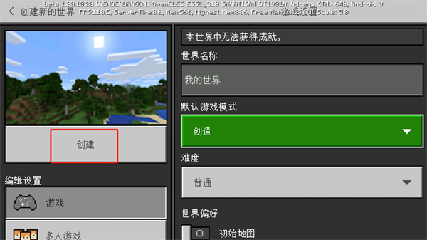 5、最后設(shè)定完成之后,就可以點(diǎn)擊【創(chuàng)建】完成創(chuàng)建,等待加載完成就可以進(jìn)入游戲。