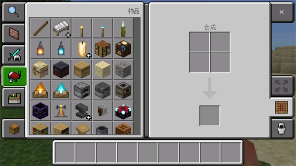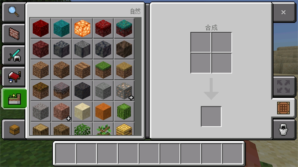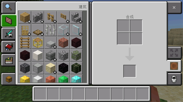 1、進入游戲后點擊物品欄中最后面的【...】,查看所有的建造方塊內容;