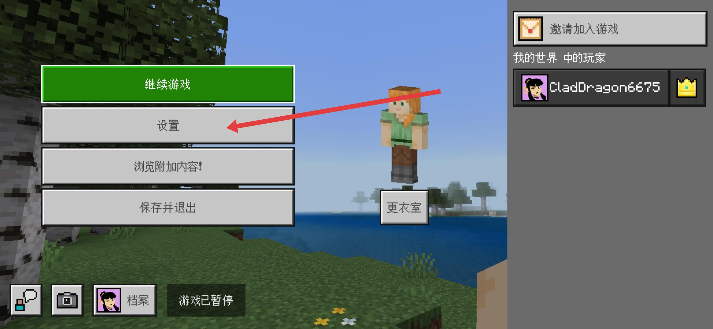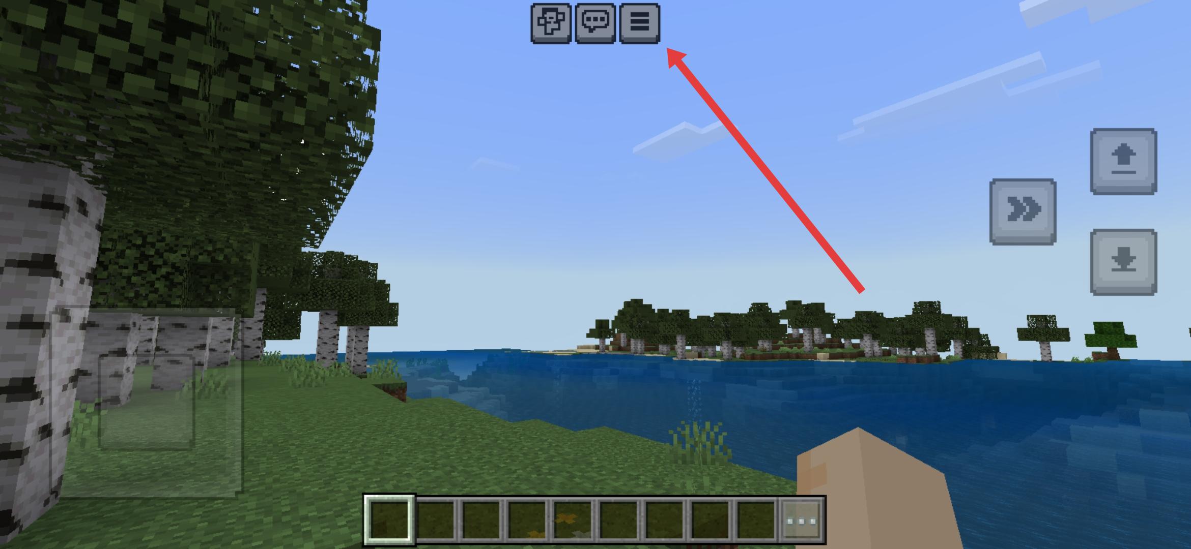 1、在我的世界游戲界面中,需要點擊頂部三個點的菜單圖標,呼出暫停菜單,為調整游戲模式做準備。