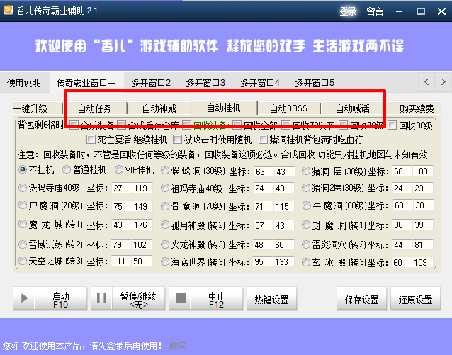 [世界掛機]支持任意地圖掛機、并可自定義坐標、指定點掛機。