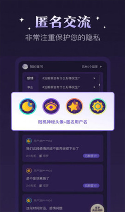 順順解惑軟件是一款有著專業(yè)心理醫(yī)生的智能軟件,用戶可以在這里進(jìn)行心理咨詢,和導(dǎo)師一對(duì)一咨詢這些問(wèn)題,了解自己近期的運(yùn)勢(shì)以及遇到的論難,可以讓大家一起解決,保持正常的心理健康,還可以看到之前其他用戶對(duì)于不同導(dǎo)師的評(píng)價(jià),放心的和導(dǎo)師溝通,平臺(tái)會(huì)保障大家的隱私安全。
