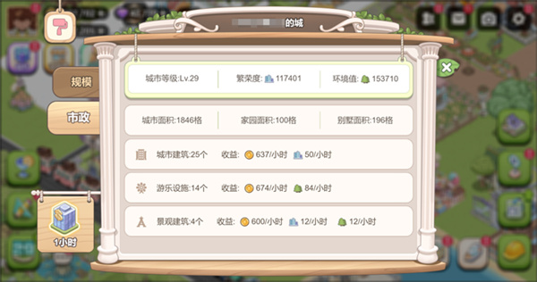 城建裝飾來源于等級樹的繁榮線任務(wù),包括基建設(shè)施、游樂設(shè)施和景觀??⒐そY(jié)束的基建設(shè)施每小時會產(chǎn)出金幣和繁榮度,竣工結(jié)束的游樂設(shè)施每小時會產(chǎn)出金幣和環(huán)境值,景觀每小時產(chǎn)出金幣、環(huán)境值與繁榮度,三者收納后也不會影響產(chǎn)出。