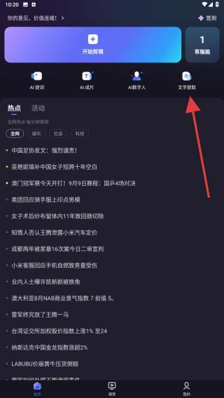 1、打開度加剪輯,進(jìn)入到首頁內(nèi),點(diǎn)擊文字提取的按鈕。