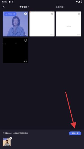 3、在此頁面內(nèi),選擇需要提取的視頻,再點(diǎn)擊提取文字即可跳轉(zhuǎn)至該頁面。