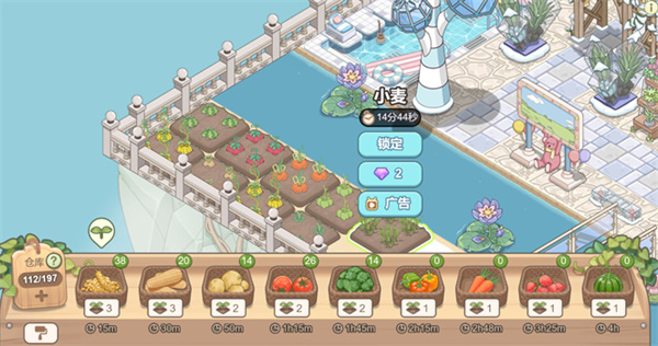作物成熟需要一段時(shí)間,使用鉆石或觀看廣告/激勵(lì)任務(wù)也可以加速成長(zhǎng),每日廣告加速次數(shù)上限為50次,建議城主大大在加速時(shí)選擇生長(zhǎng)時(shí)間較長(zhǎng)的作物,效率會(huì)更高。