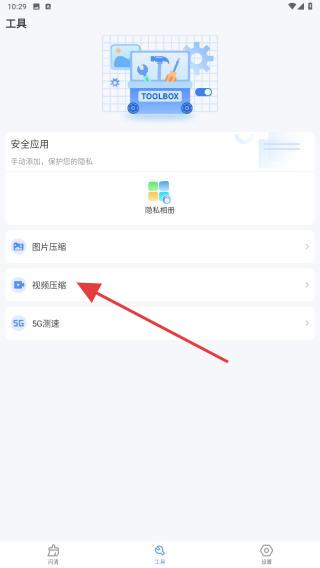 1、在工具的頁面中,找到視頻壓縮的選項,點擊進入視頻選擇界面。