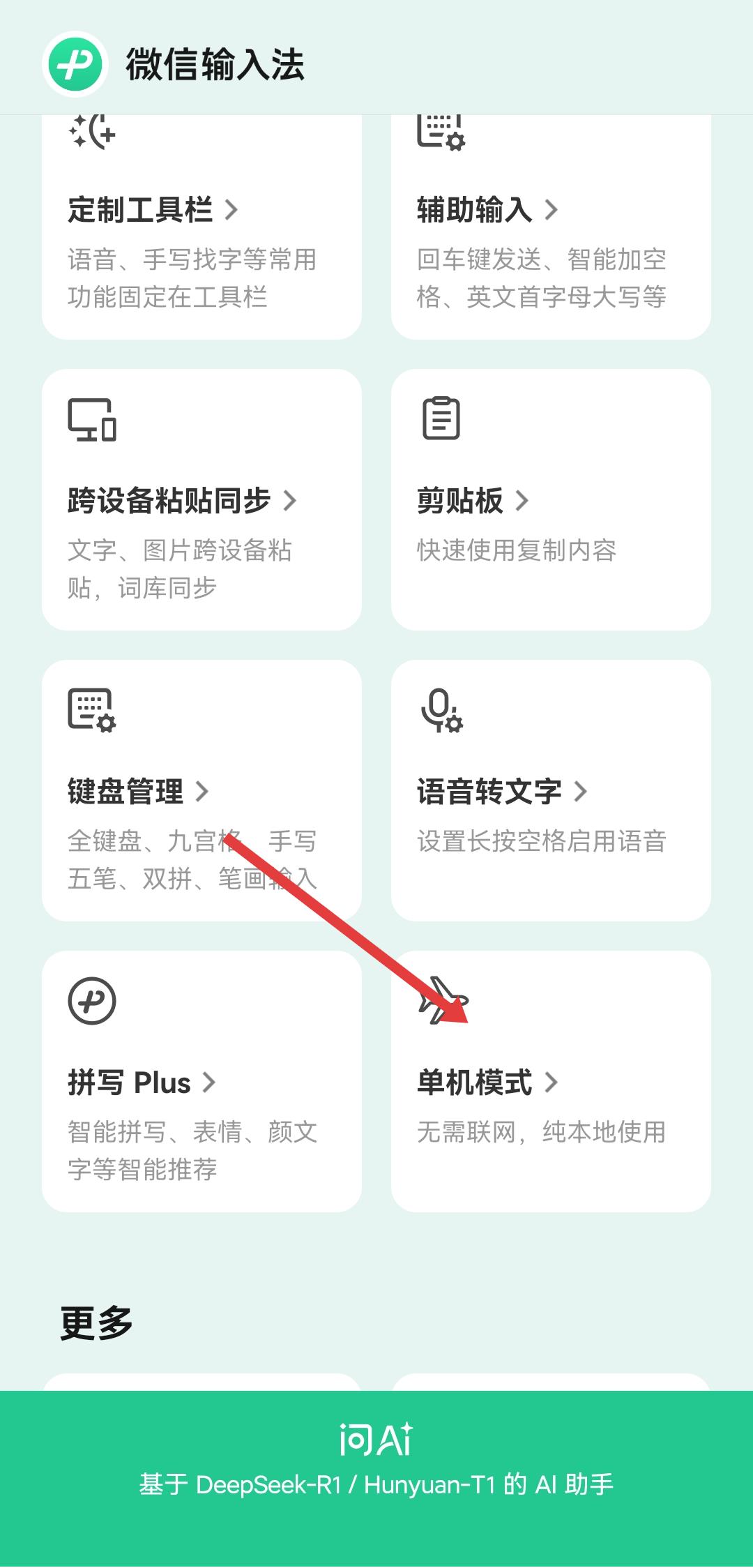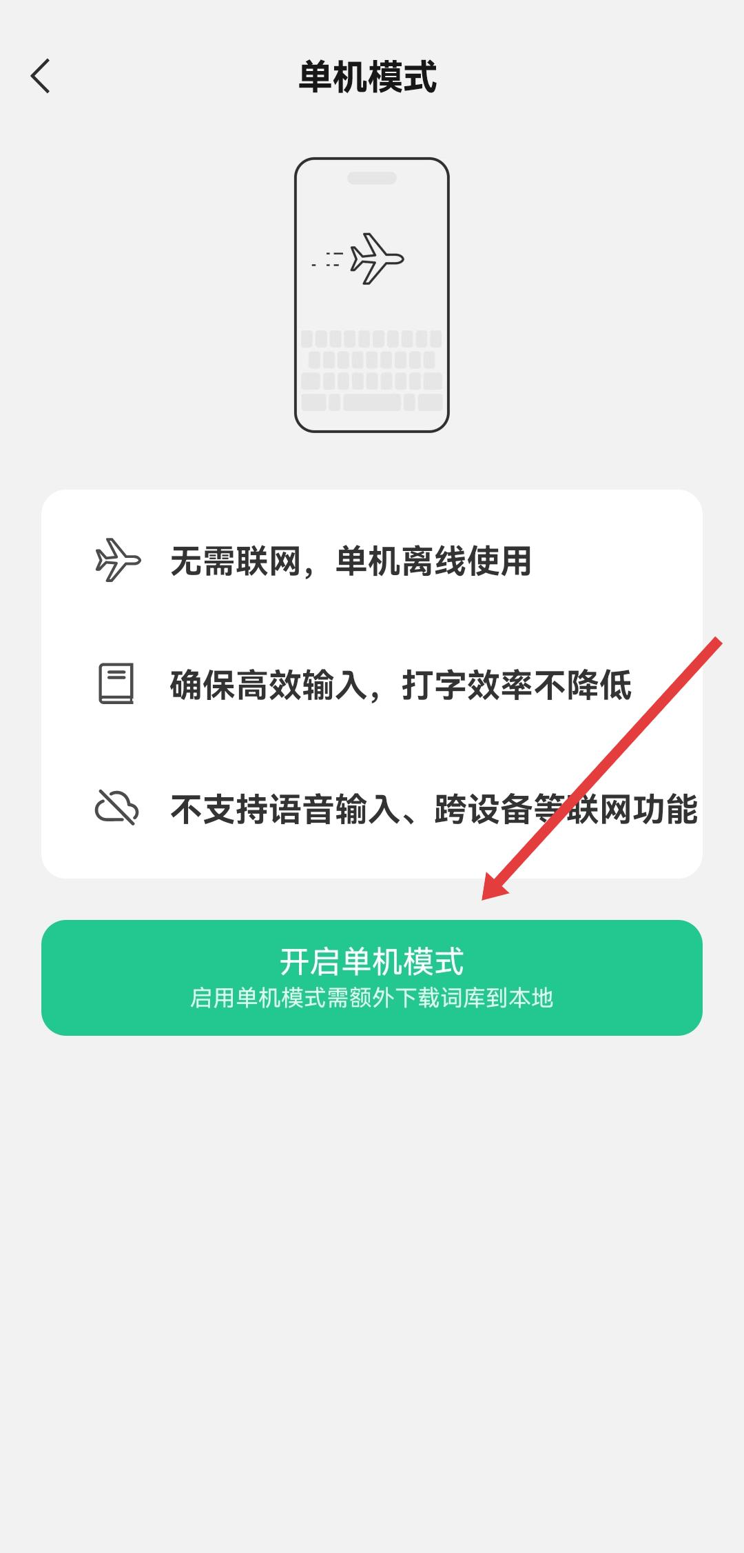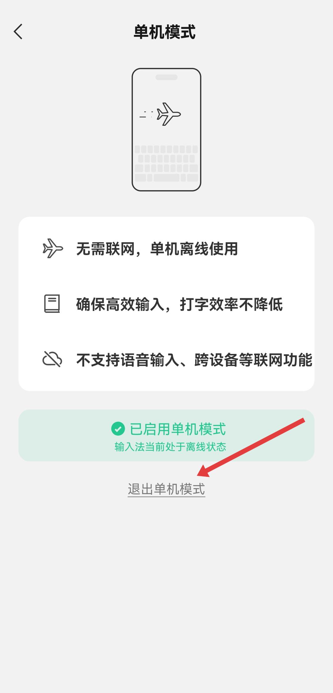 1、在微信輸入法主界面,點(diǎn)擊單機(jī)模式選項(xiàng),進(jìn)入單機(jī)模式說(shuō)明頁(yè)面。