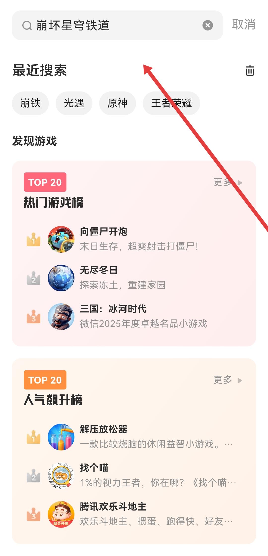 2、我們需要在搜索欄中輸入崩壞星穹鐵道的游戲名稱,查看搜索的結(jié)果。