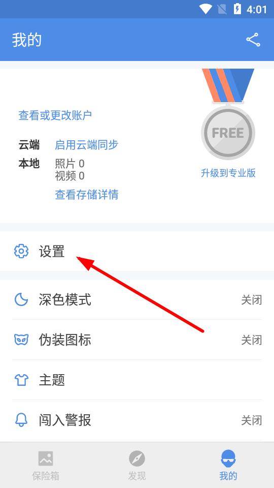 1、打開照片保險(xiǎn)箱app,點(diǎn)擊底部導(dǎo)航欄最右側(cè)我的選項(xiàng),進(jìn)入個(gè)人相關(guān)界面。