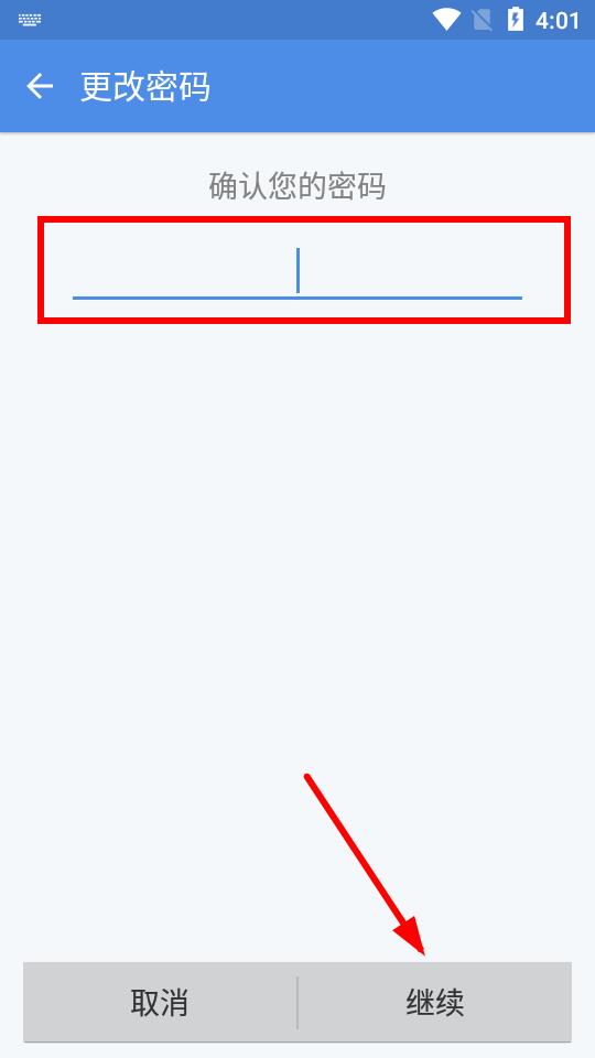 4、在確認(rèn)您的密碼界面,輸入當(dāng)前密碼,點(diǎn)擊繼續(xù)。