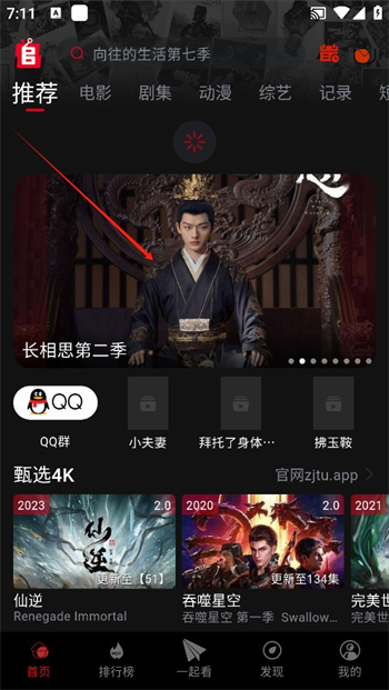 1、首先進入軟件的首頁,在這里找到你想要觀看的影片,這里小編以畫面中的長相思這款軟件為例子點擊進入;