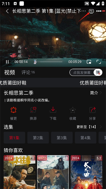 2、然后在這里找到并且點擊上方的【TV】這個投屏按鍵,即可進行這款軟件中自己想要觀看影片的投屏操作了;