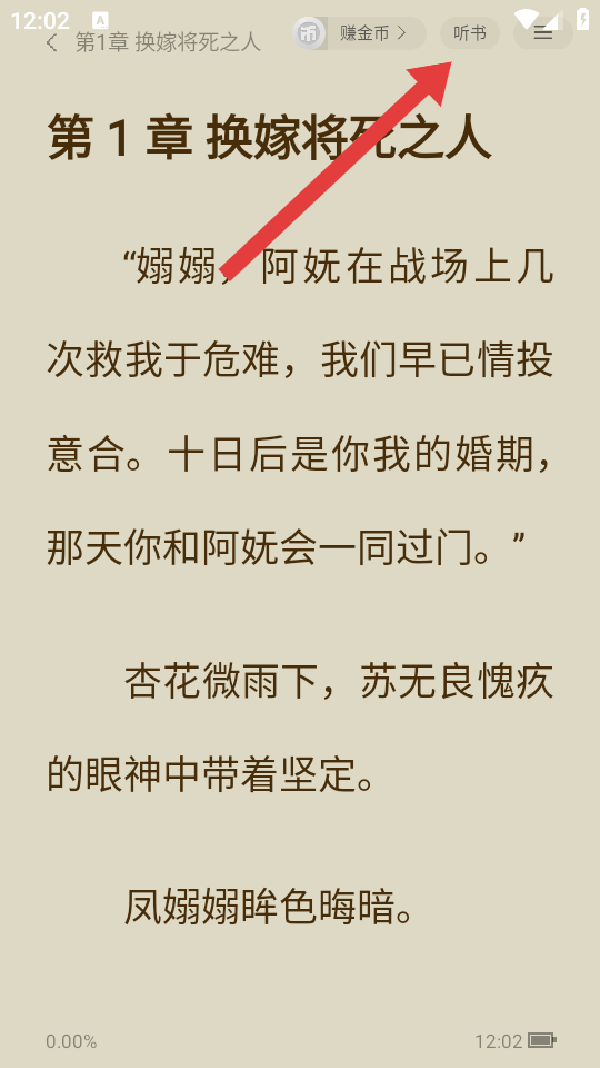 3、關(guān)閉提示后,點擊頁面右上角的聽書按鈕,切換到聽書模式。