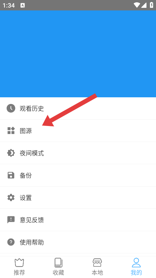 1、在芝士漫畫我的頁面,點擊圖源的選項,進入圖源管理的界面。