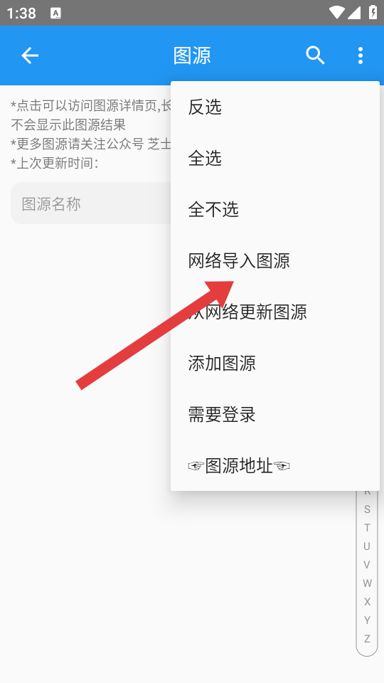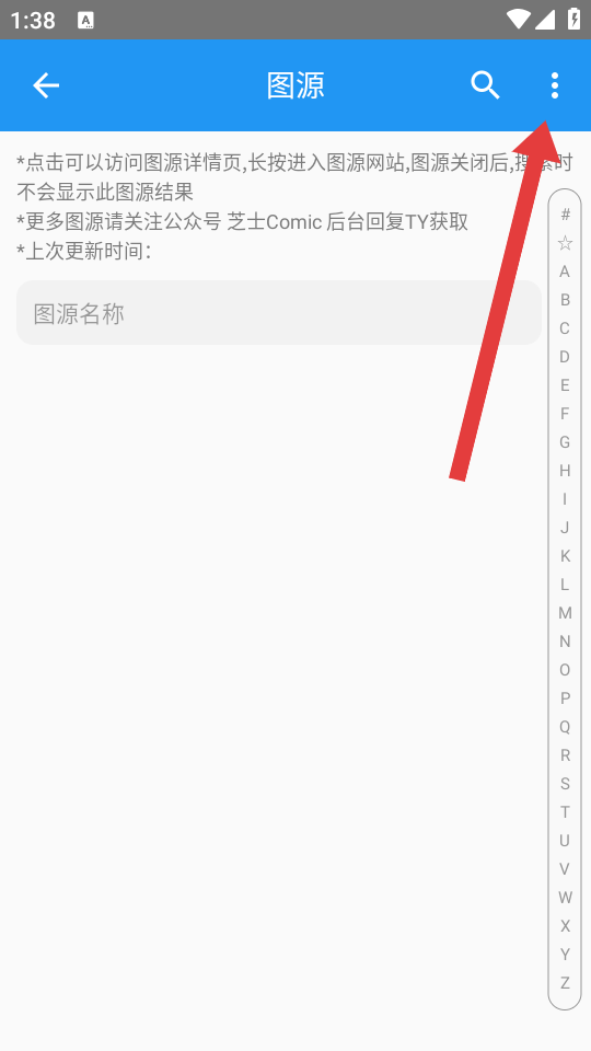 2、在圖源管理界面,點擊右上角的三點菜單按鈕,展開功能選項。