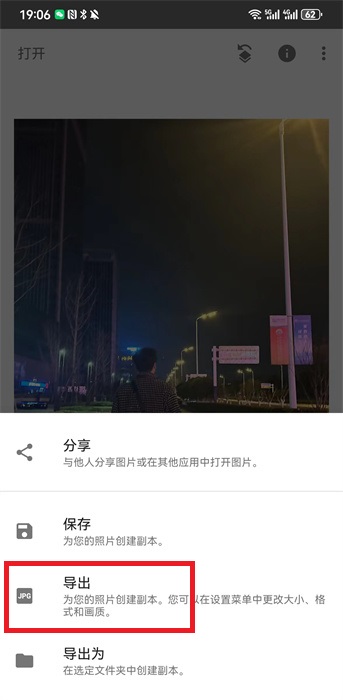 5、右下角還會(huì)有一個(gè)【導(dǎo)出】按鈕,點(diǎn)擊就可以把修改好的照片導(dǎo)出到手機(jī)上。