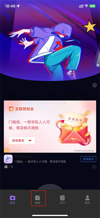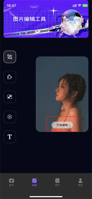 2、此時將需要點擊屏幕中央的【開始編輯】按鈕,以快速的進行圖片的選擇與編輯;