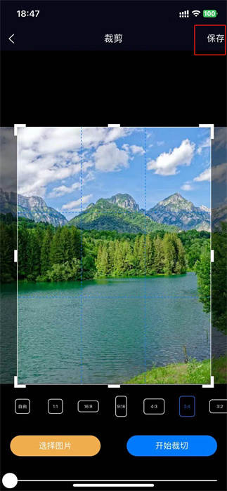 4、裁切完畢之后,只需要點擊屏幕右上角的【保存】按鈕,即可進行圖片的保存。