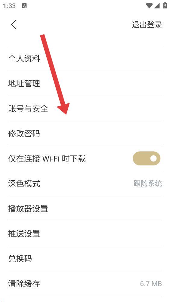 2、在設置頁面中,找到并點擊賬號與安全選項。