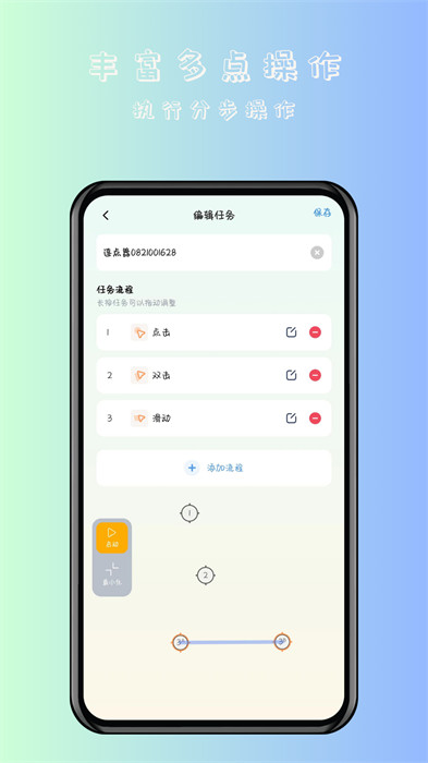 3、設(shè)置點(diǎn)擊的坐標(biāo),長(zhǎng)按點(diǎn)擊等不同的點(diǎn)擊方式,滿足不同的需求。