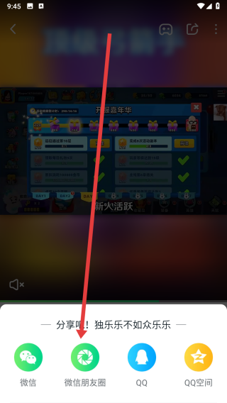 4、可以通過點擊彈窗中圖標(biāo)分享,如點擊使用微信朋友圈的方式進(jìn)行分享游戲。
