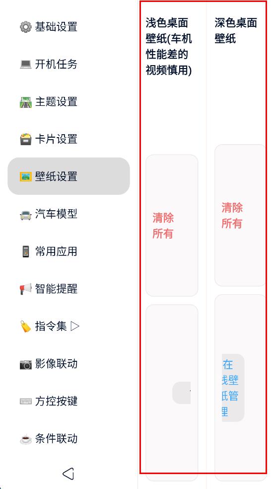 4、進入壁紙設(shè)置后,可看到淺色桌面壁紙和深色桌面壁紙等相關(guān)設(shè)置區(qū)域,能進行清除所有壁紙等操作,完成壁紙相關(guān)設(shè)置。