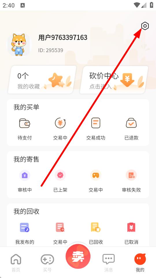 2、在我的界面中,點(diǎn)擊右上角的設(shè)置圖標(biāo)。