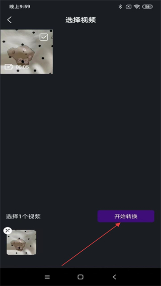 3、進入選擇視頻的界面內(nèi),選擇后再點擊開始轉(zhuǎn)換的按鈕。