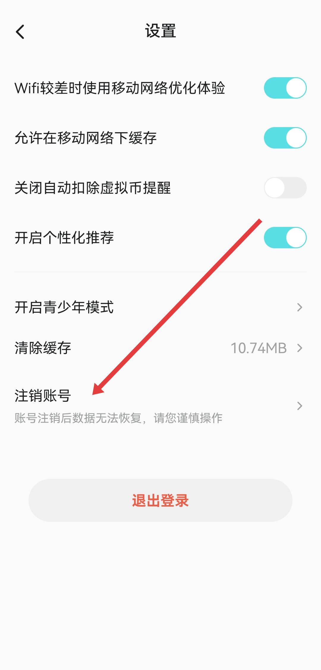 2、在設(shè)置的頁(yè)面中,找到并點(diǎn)擊注銷賬號(hào)的選項(xiàng),進(jìn)入注銷賬號(hào)說(shuō)明頁(yè)面。