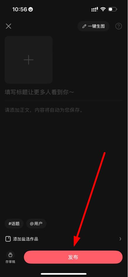3、進(jìn)入發(fā)布頁(yè)面后,添加相關(guān)圖片可選,填寫標(biāo)題和正文內(nèi)容完成后,點(diǎn)擊底部的發(fā)布按鈕即可。