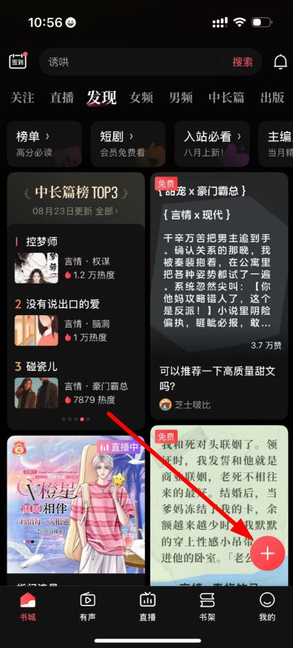 1、打開鹽言故事App,在主界面點(diǎn)擊右下角的+號(hào)按鈕。