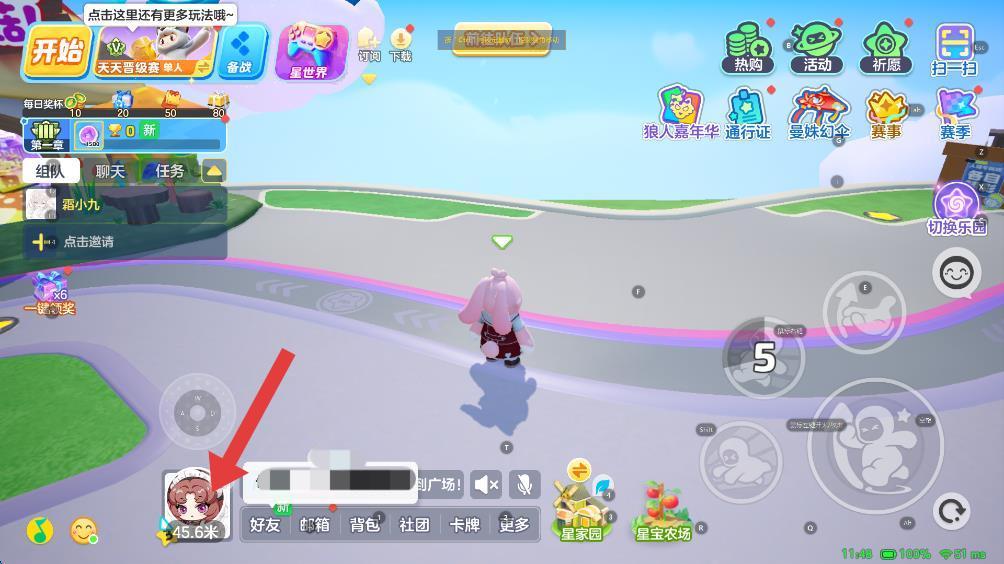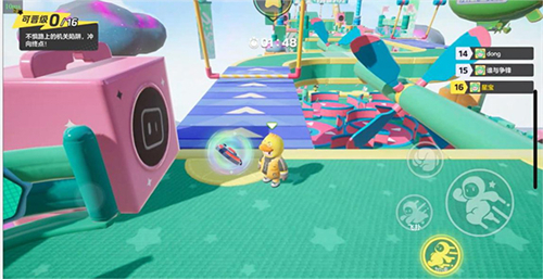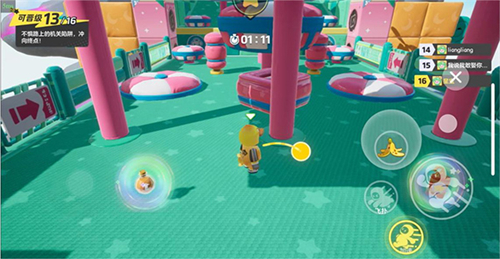 1.首先下載安裝好元夢(mèng)之星游戲后,點(diǎn)擊進(jìn)入游戲,游戲有很多不同的地圖,大家可以選擇喜歡的地圖進(jìn)入,屏幕中左邊的輪盤(pán)用來(lái)控制移動(dòng),右邊分別是道具使用、跳躍、飛撲加速技能;