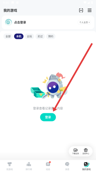 2、在進入到我的游戲頁面,可以點擊下方登錄按鈕,開始登錄操作。