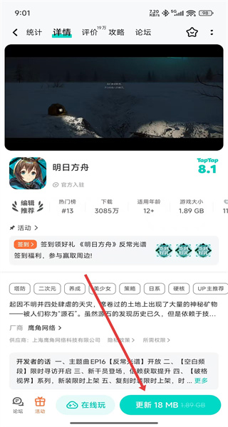 4、進入到詳情頁面中,可以點擊下方更新按鈕,進行下載更新。