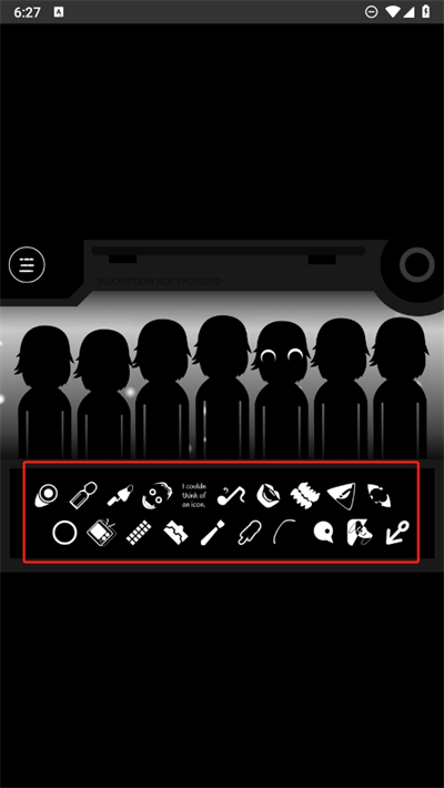 1、進入游戲后可以看到昏暗的場景下,有七個角色等待我們放入下方的物品;