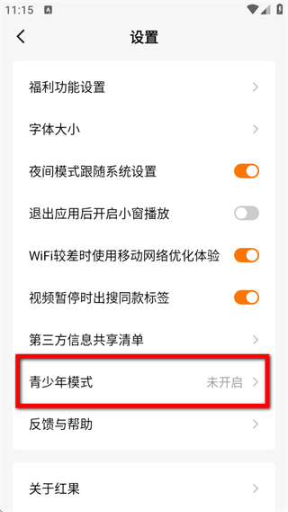 3、在設(shè)置頁面,點(diǎn)擊青少年模式選項(xiàng),進(jìn)入青少年模式介紹界面。