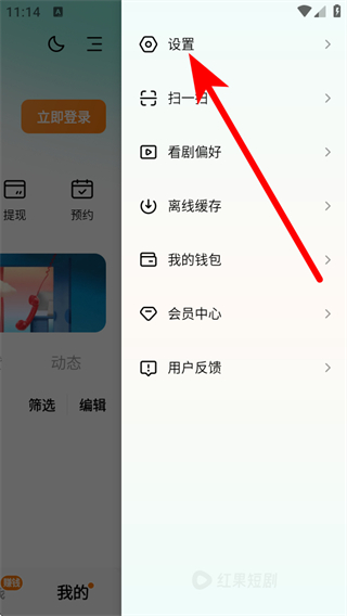 2、在功能菜單中,點(diǎn)擊設(shè)置選項(xiàng),進(jìn)入設(shè)置頁面。
