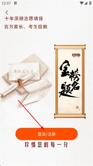 3、在彈出的頁(yè)面中,找到并點(diǎn)擊下方登錄/注冊(cè)按鈕。