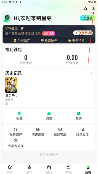 1、啟動(dòng)星芽短劇app,進(jìn)入時(shí)點(diǎn)擊右下角我的按鈕。