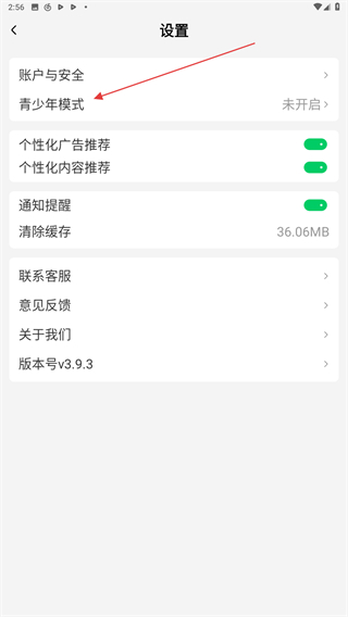 3、進(jìn)入設(shè)置的界面內(nèi),點(diǎn)擊青少年模式的按鈕即可。